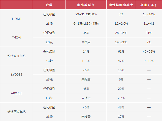 表2.常见ADC的血液学不良事件发生率(非头对头比较)