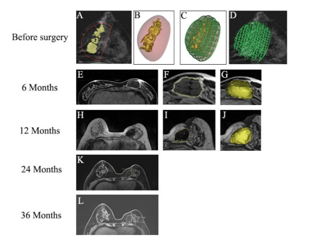 本研究是关于应用3D打印可生物降解支架进行乳房重建的首份报告。该研究的结果表明,对于不适合传统保乳手术的乳腺癌患者而言,使用3D打印支架进行部分乳房重建是一种很有前景的替代方案,在安全性、美学效果以及患者满意度方面均取得了良好的结果。
