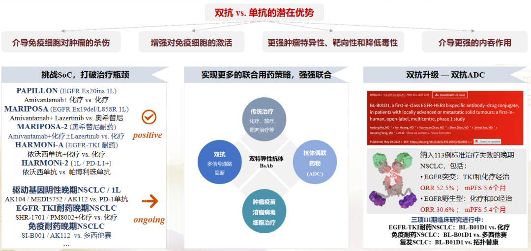 近年来,随着技术的进步,双特异性抗体(bsAbs)基于其可同时靶向两种不同的抗原或表位,增强免疫系统对肿瘤细胞的识别和杀伤作用的特性,成为肺癌领域关注热点。《肿瘤瞭望》特邀河南省肿瘤医院王慧娟教授分享双抗在肺癌领域的不同治疗手段的研究进展,展望未来探索方向。特此整理,以飨读者。