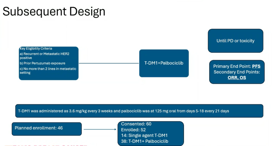 Phase II trial of TDM-1 and palbociclib in metastatic HER2 positive breast cancer