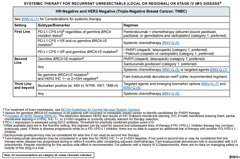 图10.《NCCN乳腺癌指南2025 v4》对三阴性晚期乳腺癌的治疗推荐