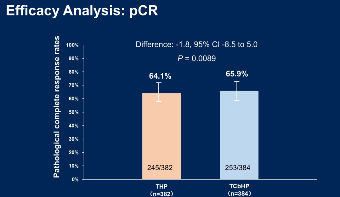 研究结果显示,该方案在总体人群中的pCR率为43.8%,其中ER阴性患者pCR率为63.7%,ER阳性患者为32.5%。这些结果表明,对于部分患者(II期/IIIa期)而言,4个周期的THP方案可能已足够。