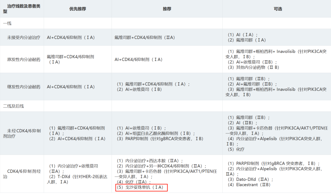 在TROPiCS-02研究和EVER-132-002研究的验证下,戈沙妥珠单抗成为了当前在内分泌耐药的HR+/HER2-晚期乳腺癌治疗中唯一获得PFS、OS双重显著获益的Trop-2 ADC,从而获得了《中国晚期乳腺癌规范诊疗指南(2024版)》[12]、《中国临床肿瘤学会(CSCO)乳腺癌诊疗指南2025》[13]、《中国抗癌协会与中华医学会肿瘤学分会乳腺癌诊治指南与规范(2025年版精要本)》[14]、《美国国立综合癌症网络(NCCN)乳腺癌临床实践指南2025 v4》[15]、《欧洲肿瘤内科学会(ESMO)转移性乳腺癌在线指南(2025 v1.2)》)[16]等国内外指南的一致推荐。