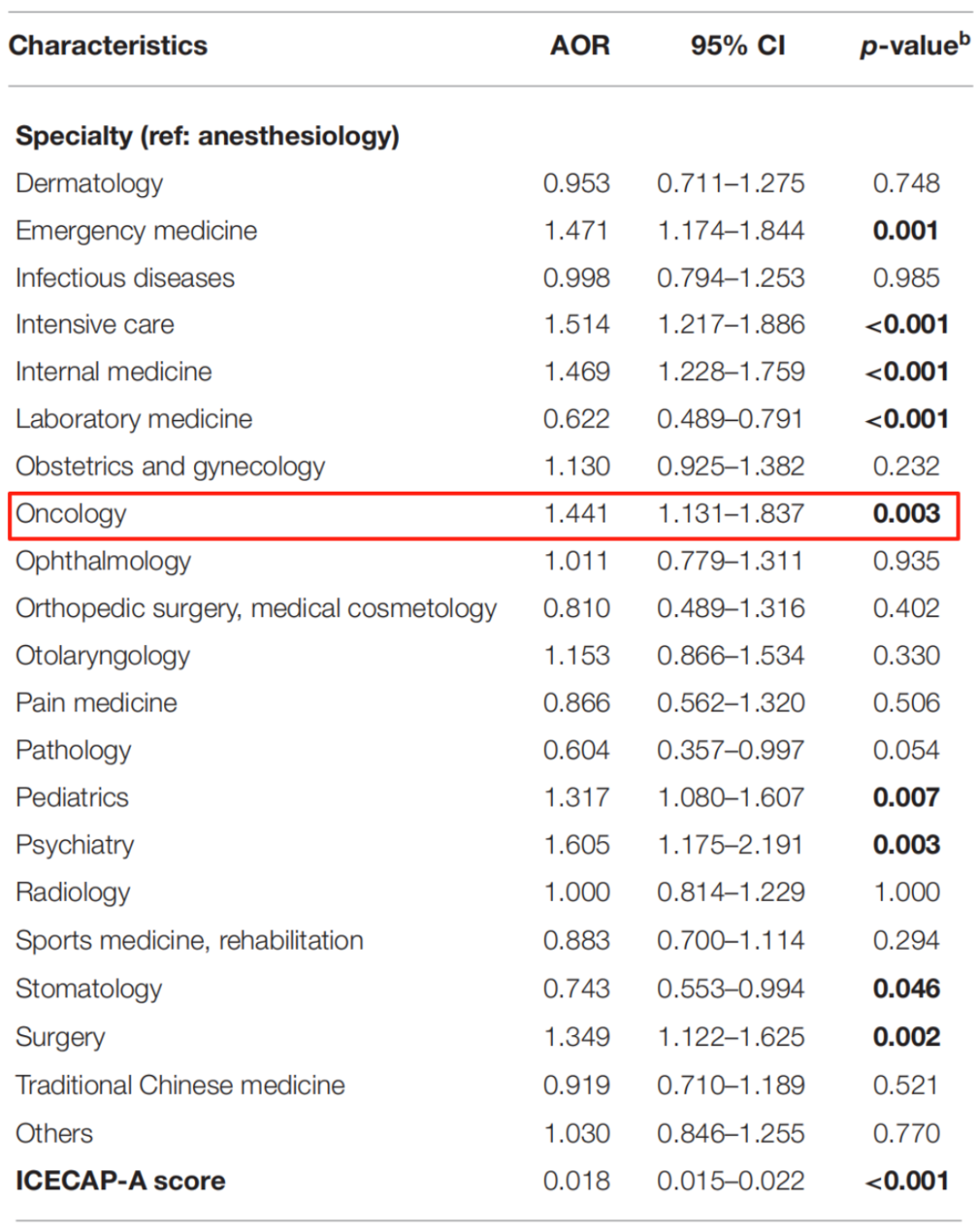 • 肿瘤科(AOR 1.441)