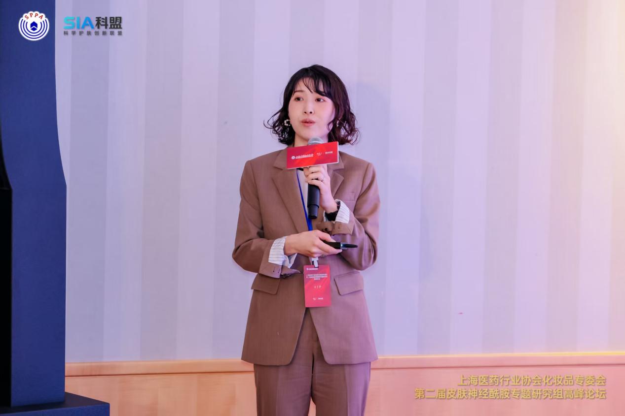 刘彦青总监从产品开发和质量管理角度深入分析了当前行业面临的挑战和机遇。她指出,花王在神经酰胺领域已有四十余年研究积累。当前消费者主要关注其保湿与修护功效,但抗炎、抗衰等潜在价值仍待深入的机制研究和探索。她强调,应以完整的科学证据链支撑功效认知,从机制研究到临床验证形成闭环;在传播上,通过专家解读、媒体传播与可视化展示等多维度科学传播方式,让消费者更直观地感知神经酰胺护理的科学价值,并通过反馈促进产品与技术的持续创新。