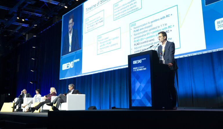 Christof Vulsteke教授在主席研讨会分享KEYNOTE-905/EV-303研究结果(图源自ESMO官网)