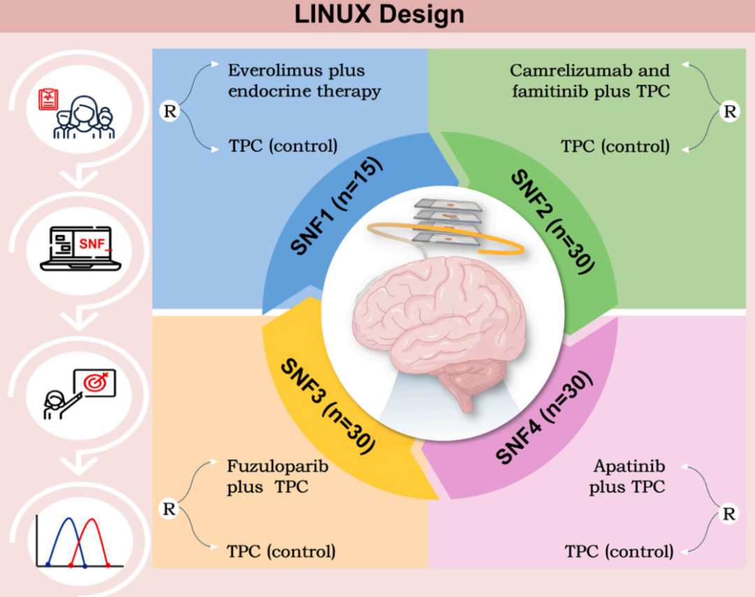 2025年12月4日,由复旦大学附属肿瘤医院邵志敏教授团队领衔,依托乳腺癌精准治疗协作组(BCTOP),一项名为LINUX(BCTOP-L-M05,NCT05594095)的多中心、随机、对照Ⅱ期平台研究发表于顶级期刊《肿瘤细胞》(Cancer Cell)(IF=44.5)。该研究基于“复旦腔面四分型”(SNF分型)的精准治疗策略,首次在临床层面验证了人工智能辅助SNF分型系统在CDK4/6抑制剂(CDK4/6i)耐药的激素受体阳性(HR+)、人表皮生长因子受体2阴性(HER2-)晚期乳腺癌患者中的精准治疗价值。