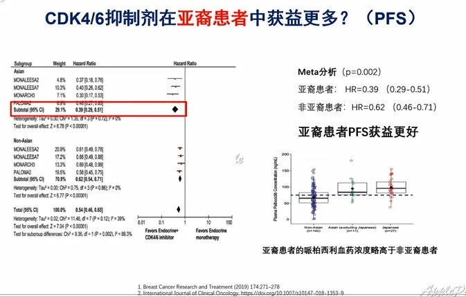 - CDK4/6抑制剂治疗亚裔、绝经前、年老和男性乳腺癌患者,获益与整体人群基本一致