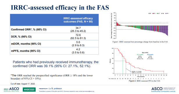 [5]Lili Mao,Lu Si,Caili Li,et al.Phase II clinical trial of camrelizumab combined with famitinib for advanced acral and mucosal melanoma.ASCO 2023;Abstract 9550.
